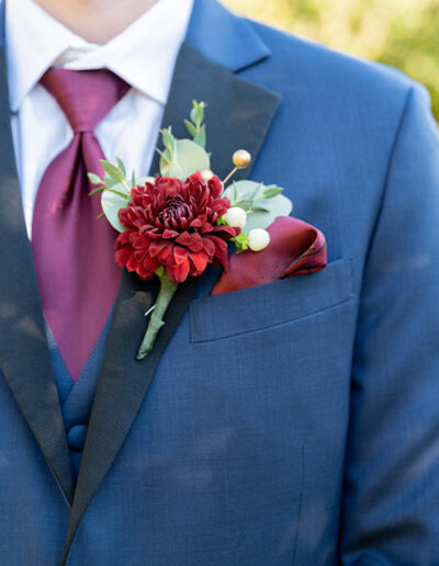 The perfect boutonnière or boutonniere adds a splash of color and nature to a suit jacket or tux and draws intimate connections to the bride’s bouquet. At American Floral we can help you choose a boutonnière based on the rest of your wedding’s flower arrangements or we can work from exacting specifications to craft the boutonnière of your dreams!